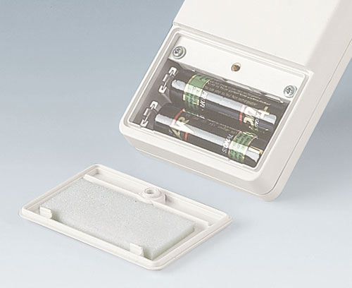 DATEC-POCKET-BOX L Robust pocket box with sealing. Recessed control area for membrane keyboards. Screw pillars prepared for mounting PCBs in the top and base. Battery compartment accessible from the outside with screwed battery compartment lid in case bottom. Battery compartment for 1 x 9 V flat battery or 2 x 1.5 V mignon cell (AA).