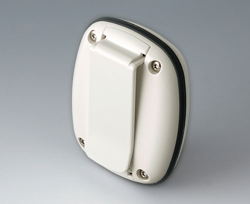 Modern small enclosure specifically designed for "wearable technologies". Three-part design consisting of highly polished top and bottom parts and a matt TPV sealing ring.