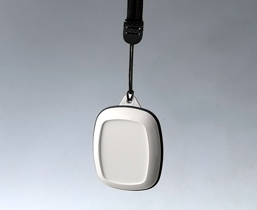 Recessed area in top for locating a membrane keyboard or decor foil. Location bars for a PCB are provided in the top part; after assembly of the enclosure the PCB is then held securely between the top and bottom parts. Internal power supply with round or button cells on the PCB, or alternatively, the use of a rechargeable battery with charging coil for charging the device inductively.