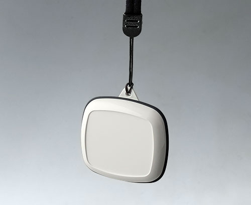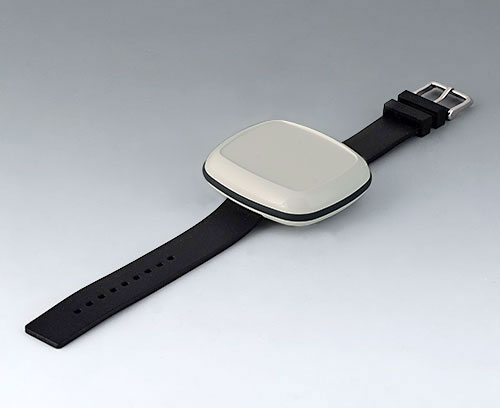 Modern small enclosure specifically designed for "wearable technologies". Three-part design consisting of highly polished top and bottom parts and a matt TPV sealing ring.