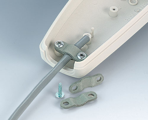 SMART-CASE L, Vers. V Three-part handheld case with cable bush. Bush simply to plug-in, suitable for round cables. With recessed operating area for membrane keyboards. PCBs can be fixed in the top and base part.