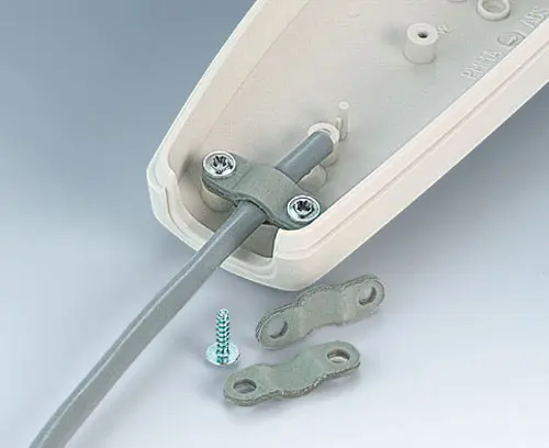 SMART-CASE M, Vers. V Three-part handheld case with cable bush. Bush simply to plug-in, suitable for round cables. With recessed operating area for membrane keyboards. PCBs can be fixed in the top and base part.
