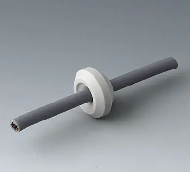 Simple cable grommet, easy to install, with easy-to-pierce membrane. Tight fit as soon as the cable is pulled backwards a little. Free of halogens. Suitable for wall thicknesses from 0.020" - 0.118" and for cable diameters from 0.197" - 0.394". Operating temperatures from -40°C to +100°C. Borehole ø 0.650".