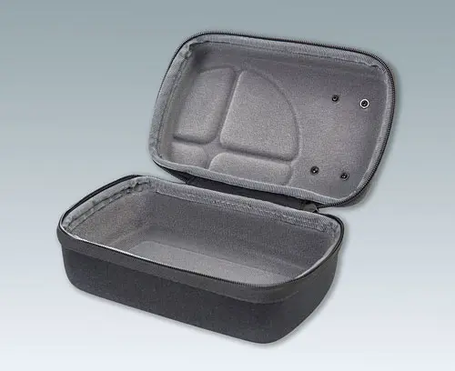 Reliable and fashionable solution for small, sensitive devices. On account of its compact size, it can also be used in larger cases as an additional protective measure or for keeping loose small parts. The case can be fitted with your logo or nameplate for your company branding (logo window, zipper).