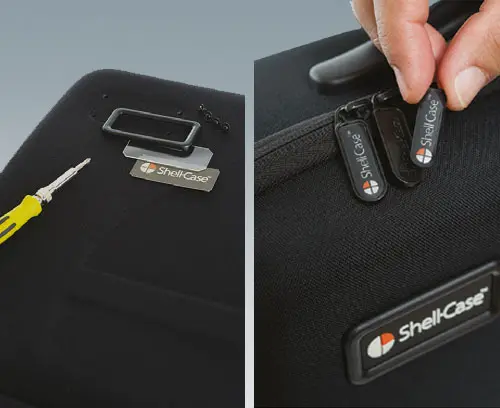 Reliable and fashionable transportation solution with a carrying handle. The carry case can be fitted with your logo or nameplate for your company branding (logo window, zipper).