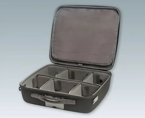 Largest version of the standard cases with a carrying handle as well as 2 eyelets for using the shoulder strap (accessory). The carry case can be fitted with your logo or nameplate for your company branding (logo window, zipper).