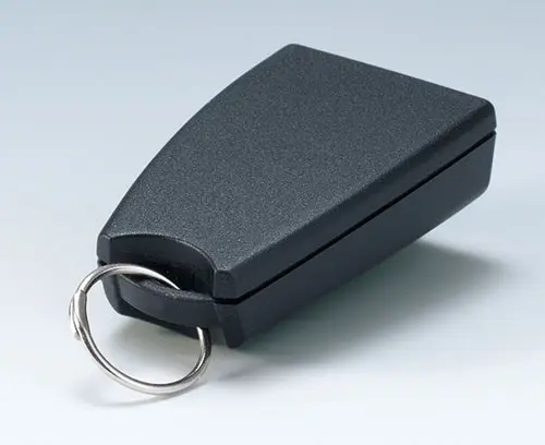 SMART-CASE XS Miniature case composed of 2 parts with eyelet hole for a keyring. Possibilities for fixing PCBs in base part. Polished front area for utmost effectiveness when exposed to infra-red light. Assembly of top and base part by screwing. Space for a 12 V round cell and small round cells.
