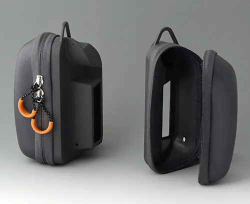 Specially designed for CARRYTEC M. Protects enclosure, cables and sensors. Consists of a molded plastic part and hard-wearing textile fabric, with a practical zip fastener for fast access. Integrated recesses in the sides of the enclosure for connecting instruments, which are then ready for immediate use. Easy to attach to the screwed connection in the enclosure. Eyelet on the top for carrying with the shoulder strap (separate article, see Accessories).