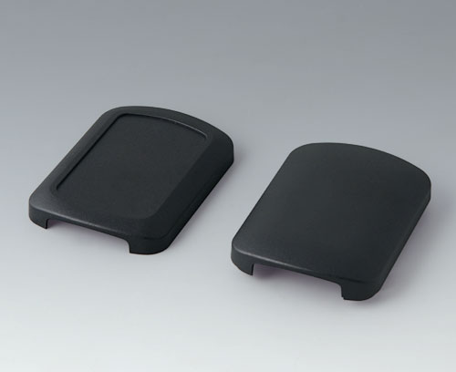 Basic enclosure, 2-piece, with convex and flattened shell. Recessed surface to protect the membrane keyboard, decor foil or label. Both end sides open, and end parts or the cable gland kits can optionally be mounted there (accessories). Four attachment domes for mounting a PCB in the flattened shell. Plastic enclosure snaps together.