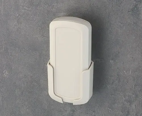 Special holder for CONNECT M for the secure storage of wired and wireless mobile devices. With large recess for plug-in connections. The holder is mounted on the wall or on other components with standard screws with head diameters of 0.217" to 0.276".