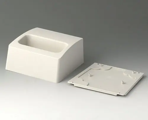 DATEC-COMPACT M 2-part compact hand-held enclosure with an ergonomic, robust design. Secure grip through finger recess in the bottom part. Recessed user area to protect the operating elements. Attachment domes for PCBs and components in the top and bottom parts.