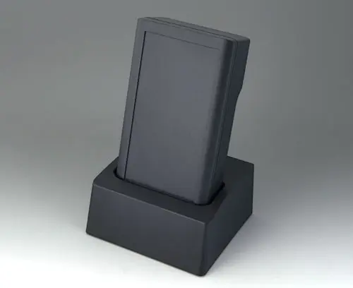 DATEC-COMPACT L 2-part compact hand-held enclosure with an ergonomic, robust design. Secure grip through finger recess in the bottom part. Recessed user area to protect the operating elements. Attachment domes for PCBs and components in the top and bottom parts.