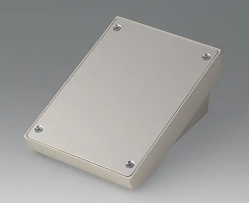 DATEC-TERMINAL S Basic case with ergonomically inclined operating area can be used with profile plate, cover or front panel. Suitable to accommodate Eurocards 100 x 160 mm.