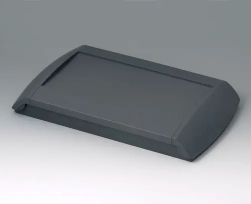 Four-part case. The bottom part can be fixed directly to the wall, the top part will be assembled by means of screws from the front. 2 side trims close the case. If required, the trims can also be locked, thus preventing unauthorized access. Recessed operating area to protect the membrane keyboard. Fastening pillars in the bottom and top part. Integrated supports for 2 x AA / 1 x 9 V. If required the hinged lid S can be mounted either on the right or on the left to partially cover the dialog area (on one side).