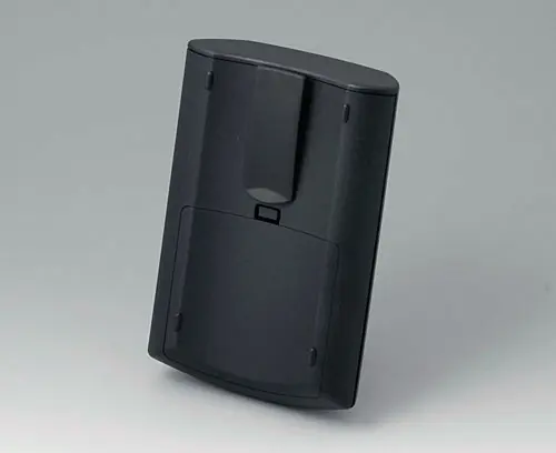 ERGO-CASE M, flat Ergonomically shaped enclosure to wear on the body. Recessed operating area in order to protect the membrane keyboards. Plane area for individual interfaces at the end side. Battery compartment lid snapped-on (battery compartment as accessory).