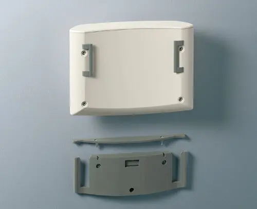 Special wall suspension element for the ERGO-CASE L for wall mounting and storage, with securing clip as protection against removal. Locating unit fitted for contacts on wall suspension element (6-pin, accessory A9178007). Fastening element required for mounting on case (accessory B7110028).