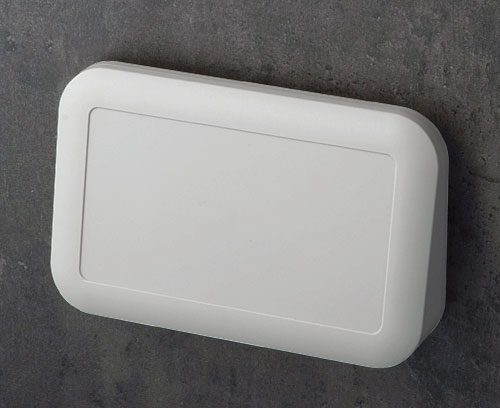 2-part plastic enclosure with operating panel ergonomically inclined by 12°. Top part with recessed area for protecting a membrane keypad or decor foil. Robust design. Case assembled with Torx drive stainless steel screws. Seal for protection class IP 65 available as an accessory. Fastening pillars for PCBs and components in the top and bottom parts. Wall suspension element ordered separately.