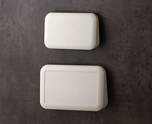 EVOTEC 200, Vers. I 2-part plastic enclosure with flat top part. Robust design with tongue and groove connection. Case assembled with Torx drive stainless steel screws. Seal for protection class IP 65 available as an accessory. Fastening pillars for PCBs and components in the top and bottom parts. Wall suspension element ordered separately.
