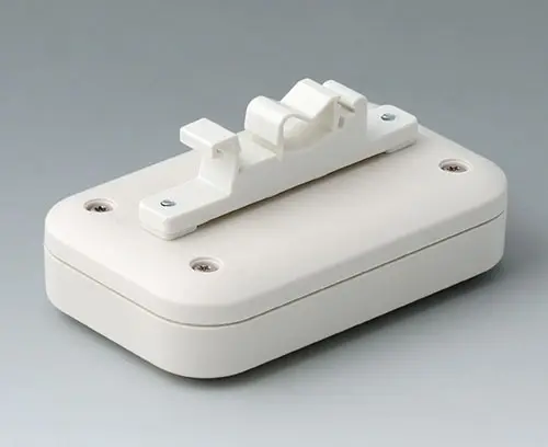 EVOTEC 100, Vers. I 2-part plastic enclosure with flat top part, height 1.024". Robust design with tongue and groove connection. Case assembled with Torx drive stainless steel screws. Fastening pillars for PCBs and components in the top and bottom parts.