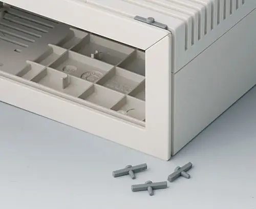 Supply 2 L-Shells, 2 side trims without ventilation (color off-white), 2 side panels, assembly kit and 4 case-feet, 1 handle bar