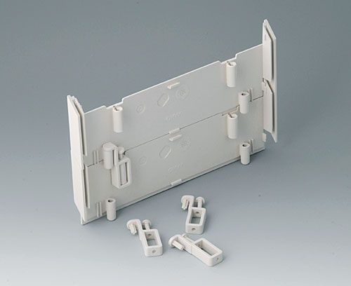 L-shells E 220, without holes Component as separate parts: L-shells without hole. Ideal for the instalation of Eurocards 100 x 220 mm or 100 x 160 mm. Side trims 220 (sep. article) necessary for covering the screw fixing.