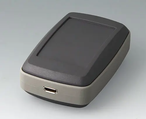 Bottom and top part EM Assembly unit: Modern, flat styling. Easy to carry. Recessed operating area for membrane keyboards. Fixing supports for PCBs/components in the case bottom. Intermediate ring EM as separate article necessary.