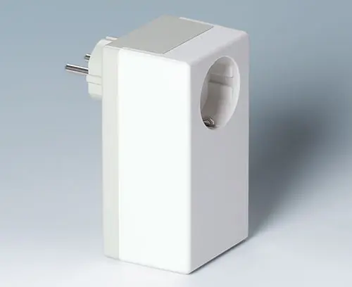 Two-part plug case, German version. Fixing towers for the PCB assembly.