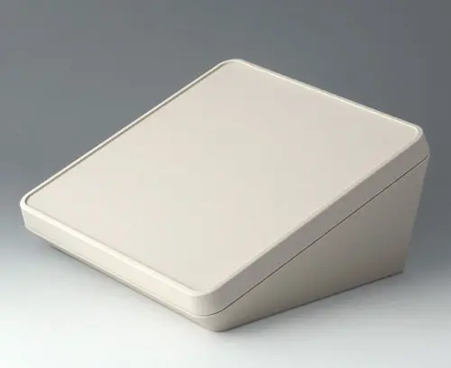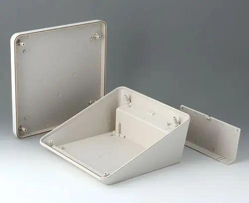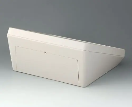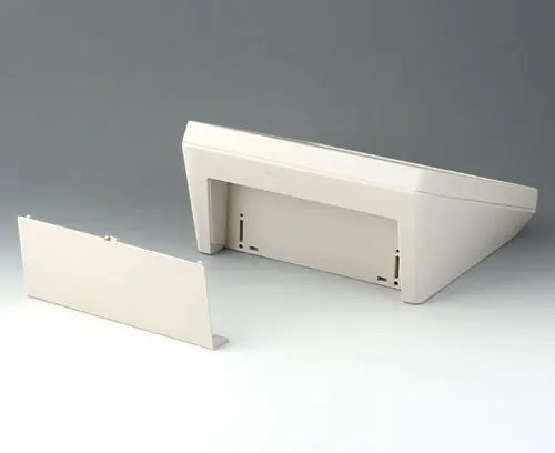 Modern three piece plastic enclosure with an ergonomically inclined operating panel. The snap-on cover included in the supply makes it possible to close the deep recessed interface area at the rear both visually and/or to install additional electronics in a separate area. Fastening pillars for PCBs and components in the top and bottom parts. Wall suspension element and sealing (to raise the protection class up to IP 65) included in the range of accessories. Hidden stainless steel assembly screws with secure Torx heads. Can also be used outdoors thanks to the high-quality material and the robust design.