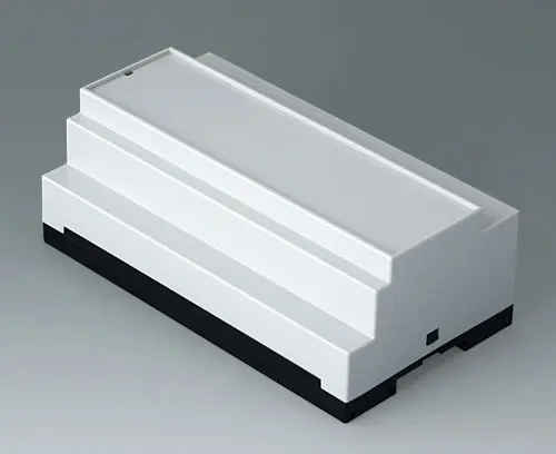 Enclosure for applications where larger components/assemblies need to be fitted inside. Different connection levels flat or high for individual configuration. Case corresponds to DIN 43880, size 1. Simple and quick assembly by locking onto DIN-rails EN 60715 TH35. Base part with fixing pillars for the PCB. Vertical and horizontal guides for additional PCBs.