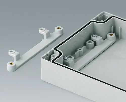 ROBUST-BOX WIDTH 4.724", Vers. II Robust plastic enclosure, ideal for electrical and electronic applications. Case shells either usable as top or base part. Each case part contains threads and fixing towers. Screw fixing outside of the sealing area. Recess of approx. 0.031" for use of membrane keyboards.
