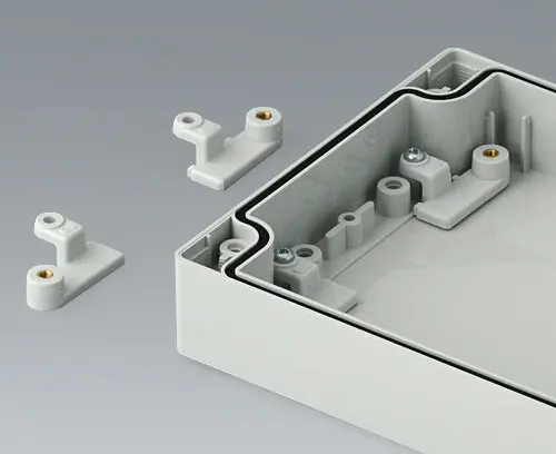 ROBUST-BOX WIDTH 9.449", Vers. I Robust plastic enclosure, ideal for electrical and electronic applications. Case shells either usable as top or base part. Each case part contains threads and fixing towers. Screw fixing outside of the sealing area. Recess of approx. 0.031" for use of membrane keyboards.