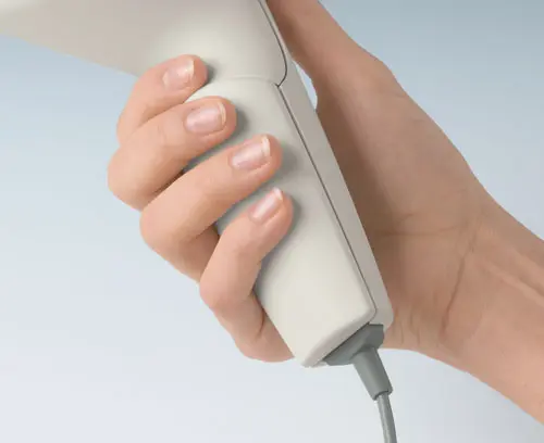 SENSO-CASE M Ergonomic plastic enclosure for single-handed operation. Recessed control panel for operating elements or display modules. Fastening pillars for PCBs in the top part. Space for 9 V flat battery or battery compartment 2 x AA (accessory). Cable strain relief (acc.) alternatively applicable. Equipment: with single-pole push-button.