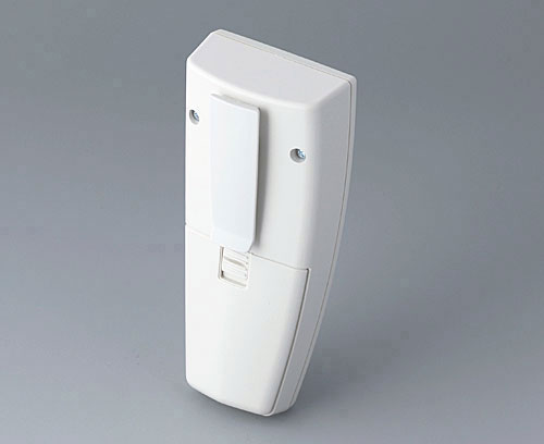 SMART-CASE M, Vers. VI Ergonomic handheld case composed of two parts. Location at the front along with a screw in the center of the case. Possiblities for fixing PCBs in top and base part.