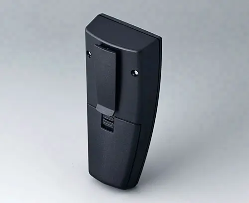 SMART-CASE M, Vers. VI Ergonomic handheld case composed of two parts. Location at the front along with a screw in the center of the case. Possiblities for fixing PCBs in top and base part.