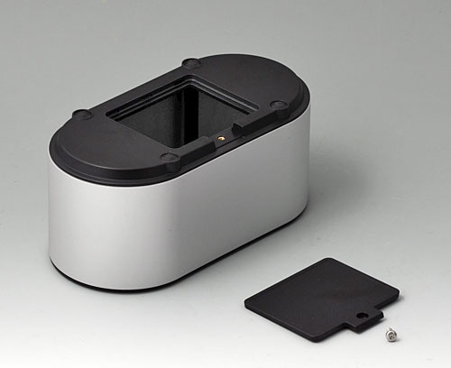 4-part enclosure for many different applications. Sturdy frame made of aluminum, glass bead-blasted and anodized. Plastic parts made of ASA+PC-FR with high UV protection and high flame resistance. Attachment domes for PCBs and components in the top and bottom parts. Top part with recessed surface to protect the membrane keyboard. Bottom part with opening and screw-down cover: practical for the use of a battery compartment or for access to the interior, e.g. for a memory card or batteries that are mounted directly on the PCB. Battery compartment kit 3 x AA with contact springs, battery clips, button cell holder and wall mounting option as accessories.