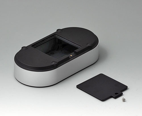 4-part enclosure for many different applications. Sturdy frame made of aluminum, glass bead-blasted and anodized. Plastic parts made of ASA+PC-FR with high UV protection and high flame resistance. Attachment domes for PCBs and components in the top and bottom parts. Top part with recessed surface to protect the membrane keyboard. Bottom part with opening and screw-down cover: practical for the use of a battery compartment or for access to the interior, e.g. for a memory card or batteries that are mounted directly on the PCB. Battery compartment kit 4 x AA with contact springs, battery clips, button cell holder and wall mounting option as accessories.