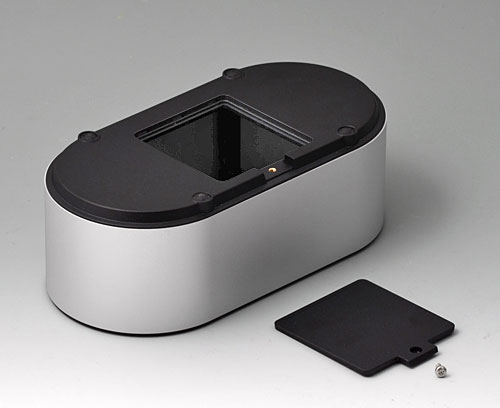 4-part enclosure for many different applications. Sturdy frame made of aluminum, glass bead-blasted and anodized. Plastic parts made of ASA+PC-FR with high UV protection and high flame resistance. Attachment domes for PCBs and components in the top and bottom parts. Top part with recessed surface to protect the membrane keyboard. Bottom part with opening and screw-down cover: practical for the use of a battery compartment or for access to the interior, e.g. for a memory card or batteries that are mounted directly on the PCB. Battery compartment kit 4 x AA with contact springs, battery clips, button cell holder and wall mounting option as accessories.