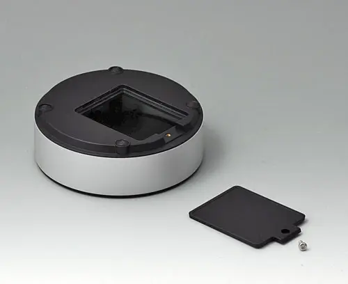4-part enclosure for many different applications. Sturdy frame made of aluminum, glass bead-blasted and anodized. Plastic parts made of ASA+PC-FR with high UV protection and high flame resistance. Attachment domes for PCBs and components in the top and bottom parts. Top part with recessed surface to protect the membrane keyboard. Bottom part with opening and screw-down cover: practical for the use of a battery compartment or for access to the interior, e.g. for a memory card or batteries that are mounted directly on the PCB. Battery compartment kit 3 x AA with contact springs, battery clips, button cell holder and wall mounting option as accessories.