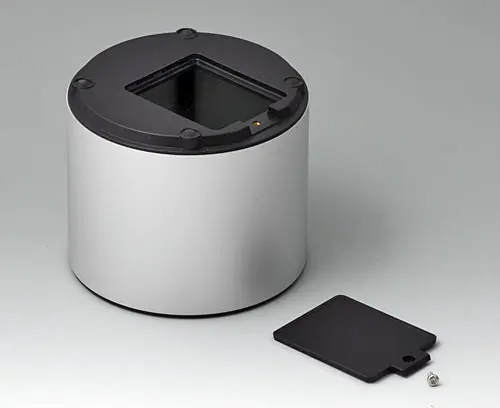 4-part enclosure for many different applications. Sturdy frame made of aluminum, glass bead-blasted and anodized. Plastic parts made of ASA+PC-FR with high UV protection and high flame resistance. Attachment domes for PCBs and components in the top and bottom parts. Top part with recessed surface to protect the membrane keyboard. Bottom part with opening and screw-down cover: practical for the use of a battery compartment or for access to the interior, e.g. for a memory card or batteries that are mounted directly on the PCB. Battery compartment kit 3 x AA with contact springs, battery clips, button cell holder and wall mounting option as accessories.