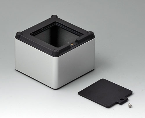 4-part enclosure for many different applications. Sturdy frame made of aluminum, glass bead-blasted and anodized. Plastic parts made of ASA+PC-FR with good UV resistance and high flame resistance. Attachment domes for PCBs and components in the top and bottom parts. Top part with recessed surface to protect the membrane keyboard. Bottom part with opening and screw-down cover: practical for the use of a battery compartment or for access to the interior, e.g. for a memory card or batteries that are mounted directly on the PCB. Battery compartment kit 4 x AA with contact springs, battery clips, button cell holder and wall mounting option as accessories.