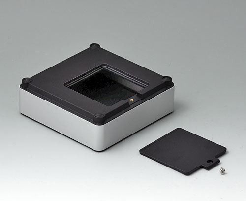 4-part enclosure for many different applications. Sturdy frame made of aluminum, glass bead-blasted and anodized. Plastic parts made of ASA+PC-FR with good UV resistance and high flame resistance. Attachment domes for PCBs and components in the top and bottom parts. Top part with recessed surface to protect the membrane keyboard. Bottom part with opening and screw-down cover: practical for the use of a battery compartment or for access to the interior, e.g. for a memory card or batteries that are mounted directly on the PCB. Battery compartment kit 4 x AA with contact springs, battery clips, button cell holder and wall mounting option as accessories.
