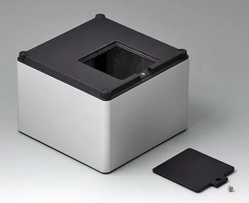4-part enclosure for many different applications. Sturdy frame made of aluminum, glass bead-blasted and anodized. Plastic parts made of ASA+PC-FR with good UV resistance and high flame resistance. Attachment domes for PCBs and components in the top and bottom parts. Top part with recessed surface to protect the membrane keyboard. Bottom part with opening and screw-down cover: practical for the use of a battery compartment or for access to the interior, e.g. for a memory card or batteries that are mounted directly on the PCB. Battery compartment kit 4 x AA with contact springs, battery clips, button cell holder and wall mounting option as accessories.