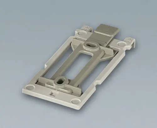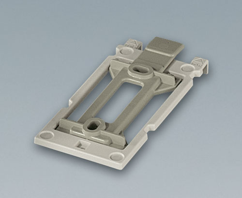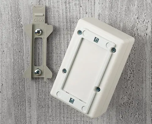 Two-part construction. The adapter is screwed down together with the base part of the case. Due to preshaped pockets, each case can be quickly and securely unlatched from the wall suspension element.